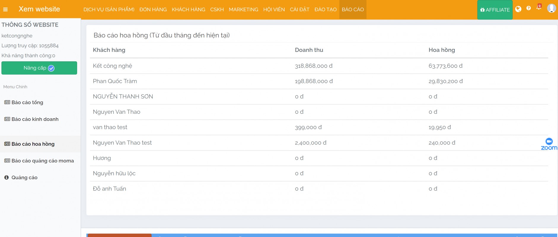 3. BÁO CÁO KINH DOANH THÁNG CỦA MỘT DOANH NGHIỆP SỬ DỤNG MIỄN PHÍ GIẢI PHÁP MOMA MARKETING